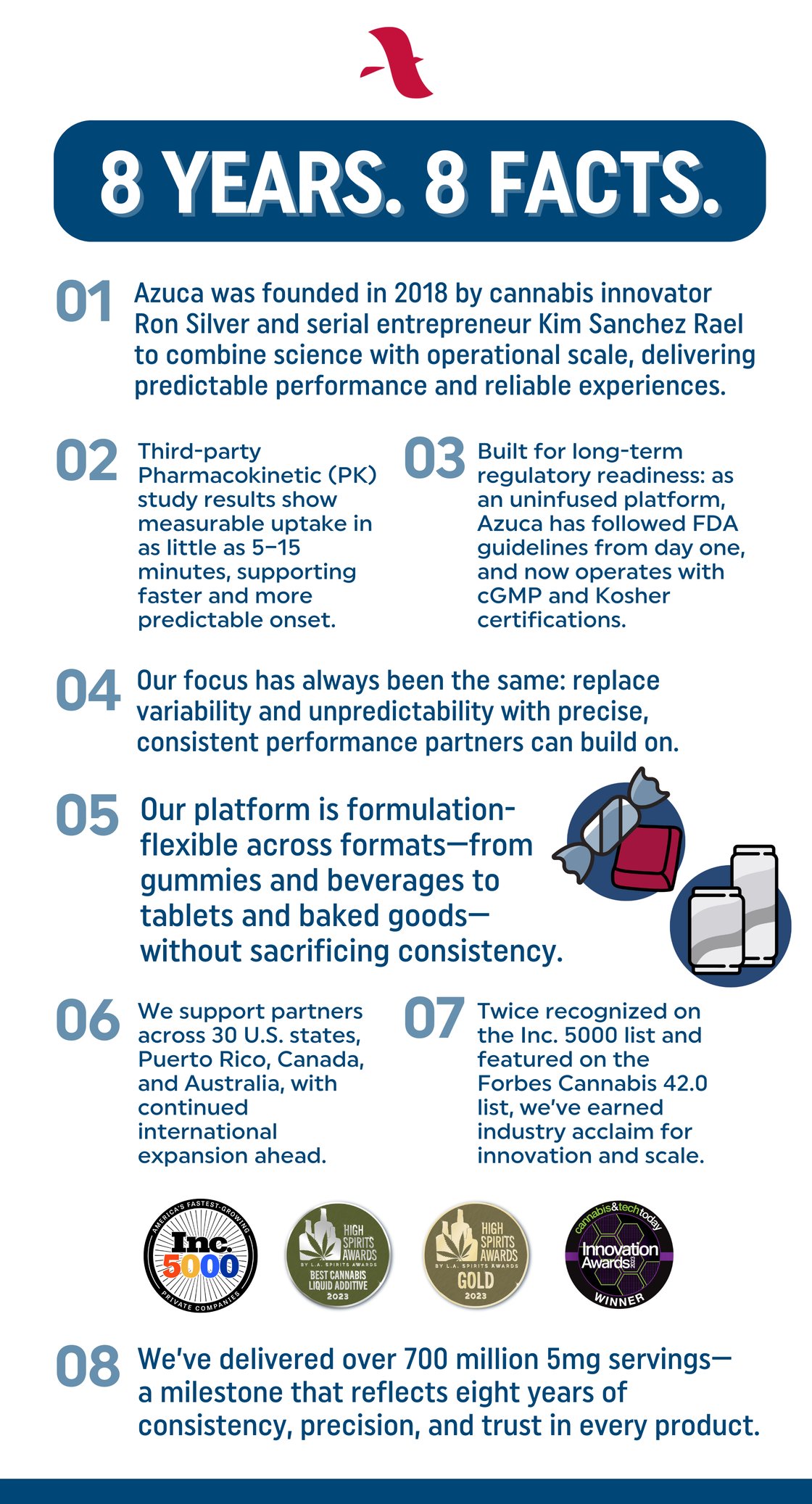 Together, we’ve officially reached 8 years in business and more than 700 million precisely dosed fast-acting 5mg servings infused across global medical and adult-use markets.